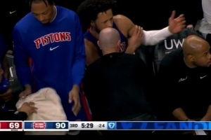 受伤了?康宁汉姆左臂不适替补席接受队医检查