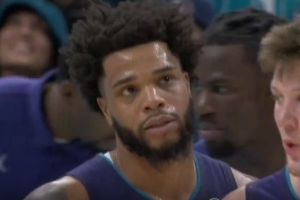 战术很成功!布里奇斯跑出空档篮下打成2+1 为黄蜂保留悬念