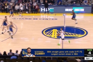 一骑绝尘!库里外线三分命中 连续66场进三分保持现存最长纪录