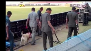 警犬在乌帕尔体育场进行了全面检查。只有持有有效电子通行证的人员才能进入。