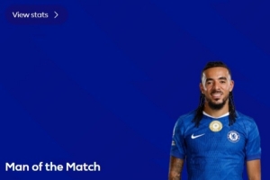 传射建功,官方:古斯托被评为切尔西2-0埃弗顿全场最佳球员
