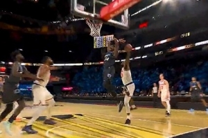 防守还是比较慢!杰弗里斯高速反击 迎着杨瀚森将球扣进