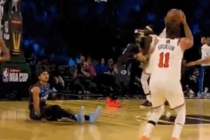 太横了!布伦森单打晃倒布莱克撤步三分再进!再次献吻赌城!