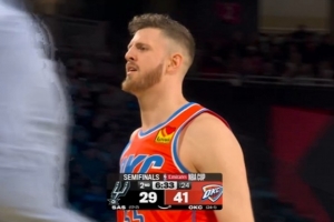 招牌绝技!哈滕弧顶接球 带一步高抛空心命中打停马刺