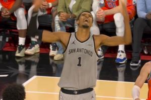 很稳!马刺领先3分点球战术成功 切特2罚1中 文班怒吼庆祝!