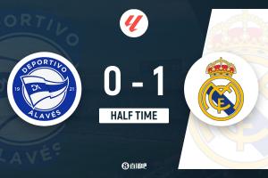 半场-皇马暂1-0阿拉维斯 姆巴佩一条龙破门贝林厄姆助攻+进球被吹