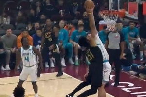 防守还是比较慢!杰弗里斯高速反击 迎着杨瀚森将球扣进