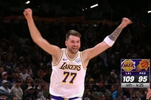 铁了一晚上!东契奇终于投进第二记三分 高举双拳开心得像个孩子