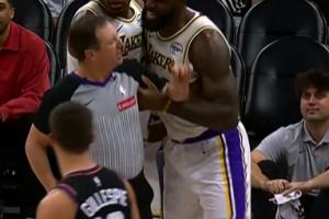 愤怒至极!詹姆斯拉着裁判怒喷:MD这犯规太TM过分了 傻X裁判!