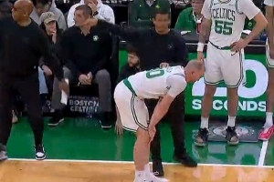 希望无大碍!豪泽被绊了一下 一瘸一拐坚持不住&返回更衣室