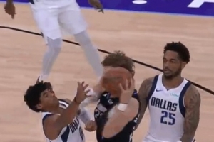 马尔卡宁肘翻克里斯蒂 被吹罚一级恶意犯规 独行侠2罚1掷