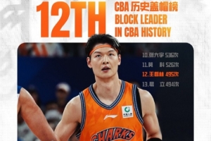 里程碑!王哲林生涯盖帽数达到495次 超越易立升至CBA历史第12位
