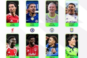 英超官方本轮最佳球员候选:哈兰德领衔,埃基蒂克、萨卡在列