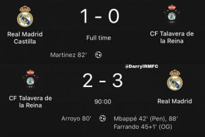 上个月卡斯蒂利亚零封击败塔拉维亚,今日皇马一线队被打进2球