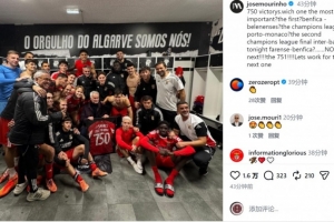 穆里尼奥社媒写道:“750场胜利。哪场最重要?是第一场(本菲卡对阵贝伦人)吗?是欧冠波尔图对阵摩纳哥吗?是第二场欧冠决赛国米对阵拜仁吗?还是今晚法伦斯对本菲卡?不!是下一场!第751场!让我们为下一场胜利而努力!”