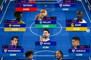 德转列沙特超最贵阵:雷特吉、努涅斯领衔,特奥、科曼在列