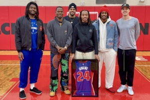 客场打独行侠!本地球员詹金斯忙里偷闲回高中母校出席活动