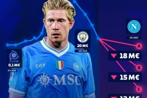 德转确认德布劳内身价下降:最高1800万欧,最低1200万欧