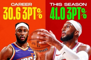努力终得回报。对手再也不能对他视而不见,这手提升后的跳投技术,结合他标志性的能量与防守,正释放出更大的价值。