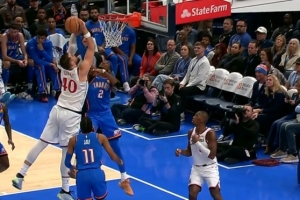 身高相差悬殊!亚历山大篮下护筐!正面血帽祖巴茨扣篮