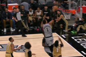 怪物啊!文班轻松站帽+抓球 自己一条龙无视防守滑翔劈扣