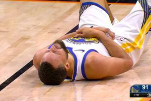 虽迟但到!狄龙完成防守之后再出扫拳!击中库里胸口吃到恶犯!