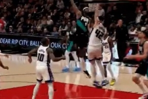 给小杨看激动了!罗威关键时刻空接隔人暴扣!开拓者领先三分!
