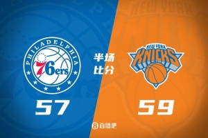 尼克斯半场59-57领先76人 布伦森16+6 马克西17分 乔治9中2