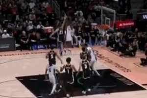 不容易啊!过去三场三分16中0的哈里森·巴恩斯终于开张