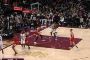 翻过来了!汤姆林底角命中三分球 骑士反超公牛