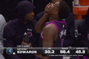 伤病没好利索?杰伦威罚球期间 爱德华兹在场边吃了点药