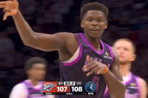 问题交给雷霆!戈贝尔关键前场篮板拍出 爱德华兹撤步三分反超1分
