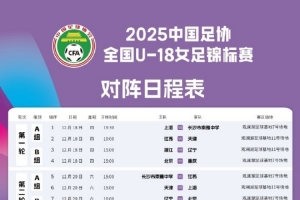 2025中国足协全国青少年女子足球锦标赛U-18组 赛程表+第1轮赛果