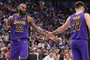 东契奇在詹姆斯出战的比赛场均36.2分9.6助 无詹时34.4分8.7助