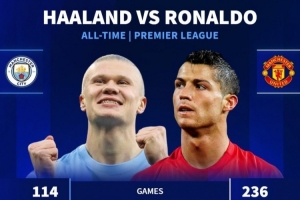 哈兰德114场英超104球21助攻+联赛2冠,C罗236场103球47助攻+3冠
