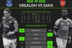 本赛季英超关键数据对比:萨卡4球1助攻,格拉利什2球4助攻