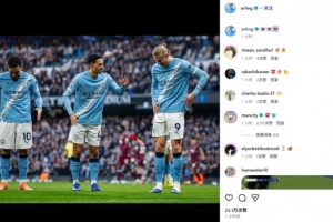 独造3球!哈兰德社媒晒同队友机器人舞庆祝照: