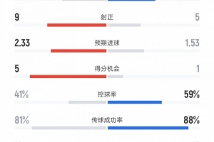 尤文vs罗马数据:射门13比14、进球机会5比1、控球率41%比59%