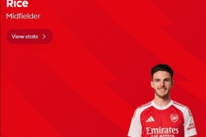 官方:赖斯当选阿森纳1-0埃弗顿全场最佳球员
