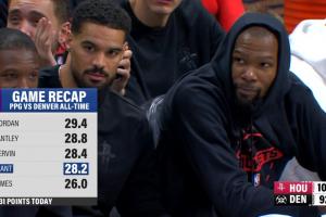 打掘金历史场均得分榜:杜兰特28.2分第四 乔丹29.4分第一