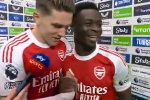 约克雷斯赛后给萨卡颁奖:拿好了兄弟,家里还有位置放奖杯吗
