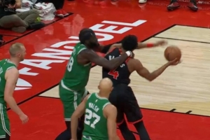 不看比看还准!巴恩斯篮下被拉住不看框打成2+1 科塔被判一级恶犯