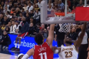 挑战不够用!詹姆斯追防科林斯被对手打2+1 示意挑战但湖人用完了