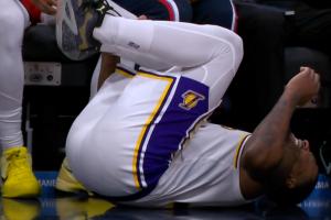 斯玛特投底角三分落地踩到科比·桑德斯 后者被吹一级恶意犯规!