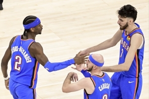 切特用一个词形容队友:SGA&杰伦威有型 卡鲁索(秃头)防守