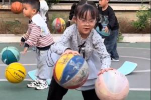 篮球和跷跷板结合有没有搞头?女娃跷跷板上左摇右晃双手流畅运球