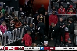 望无大碍!杰伦·约翰逊强攻重摔在地 罚球后自己走回更衣室
