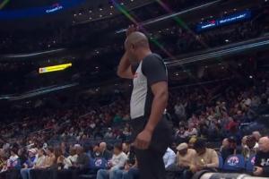 裁判挺耐杀文班肘击裁判脑门 后者捂着头继续执裁