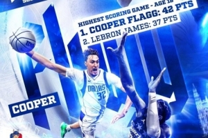 19岁了!杜克官方晒弗拉格18岁数据:单场得分最高 总得分第三