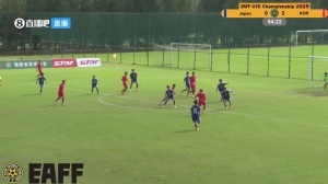 体育资讯12月22日讯 U15东亚杯A组第3轮,日本U15对阵韩国U15,第54分钟,日本队再丢一球0-3落后,韩国球员精彩兜射死角!